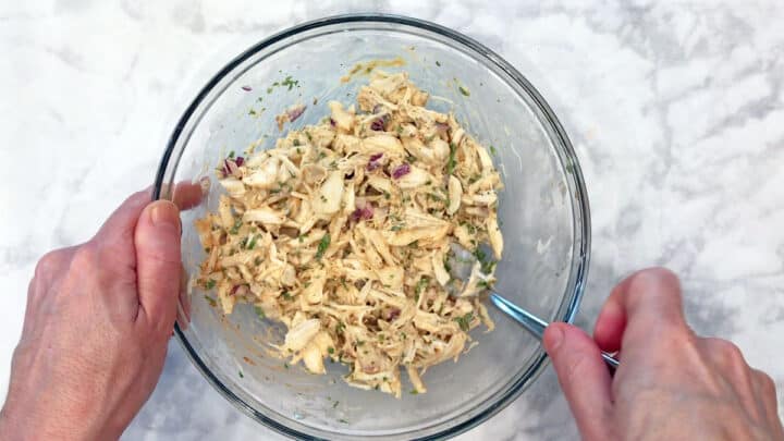 This salad is also excellent on a bed of shredded lettuce, in a lettuce sandwich, on a thick slice of almond flour bread, or on a toasted and buttered keto English muffin.